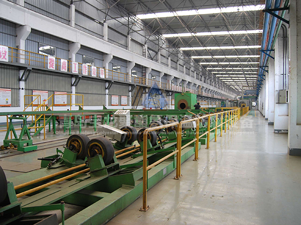 河北钢管内壁抛丸除锈作业线用于钢管、铸管内壁的抛丸、喷丸清理,主要利用移动抛、喷丸器抛出高速弹丸流束,打击钢、铸管内表面的氧化皮、锈层及其杂物,使其获得精细的光亮表面,有利提高其内壁涂饰质量。